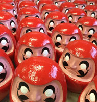 だるまは、サンスクリット語「Bodhi-dharma」の音写「菩提達磨」の略で、「darma」の原義は「法」を意味する。菩提達磨(円覚大師、達磨大師とも)が、魏の嵩山(すうざん)にある少林寺で面壁九年を行い、その座禅によって手足が腐ったという伝説から、手足のない玩具(置物)としての「だるま」が作られたといわれる。日本では、「起き上がり小法師」と呼ばれる、底に重りをつけただるまが愛好され、何度も起き上がるという連想から、江戸中期以降に「七転び八起き」の縁起物として信仰されるようになった。全体に赤く塗られているだるまが基本的なものであるが、これは菩提達磨の衣を着ていたことに由来し、赤は古くから魔除けの色とされていたことにも通ずる。願い事ができたときにだるまの片目を墨で塗り、達成したらもう一方の目を塗る風習は、養蚕農家が片目に墨入れをして願掛けをしたら良い繭が出来たという話が商人の間に広まったためといわれる。また、だるまに目を入れる順序は正式には決まっていないが、左目を塗って祈願し成就したら右目を入れるのが一般的で、選挙の場合は右目から塗り、当選したら左目を入れるのが一般的とされる。